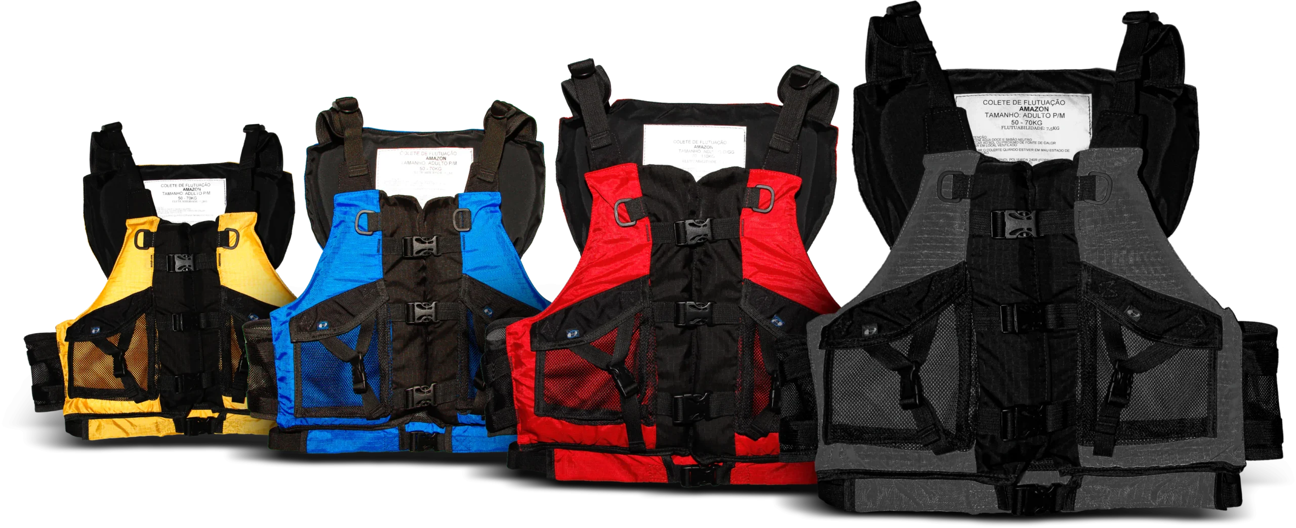 União entre conforto e segurança com baixo volume frontal, 2 bolsos e 2 “D  ring ” (meia argola) em poliamida. Ventilação total na parte dorsal do colete, flutuabilidade de 8 kg.  Ideal para praticantes de esporte aquático em clima tropical